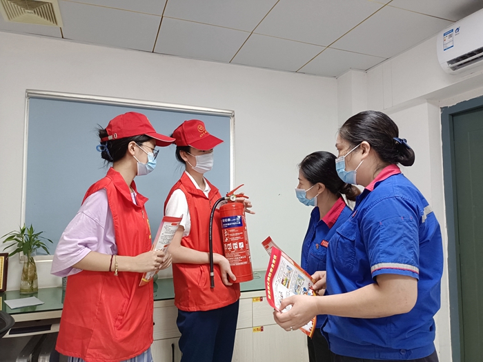 2021年8月23日,建甌市大學生消防志愿者深入水西站開展消防安全隱患排查,為場所從業人員開展滅火器操作等消防技能培訓。