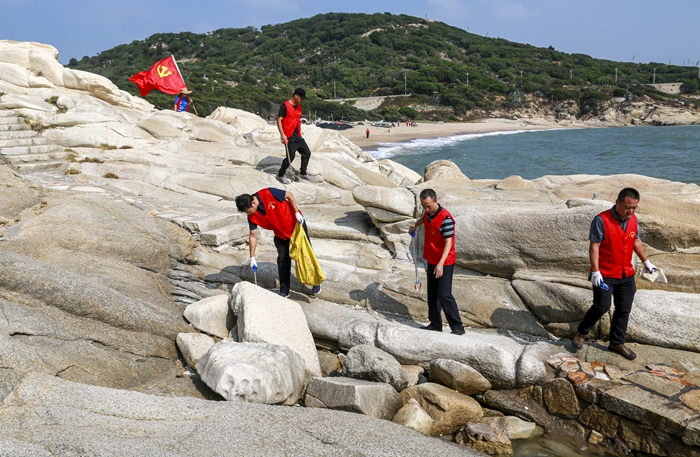 湄洲島媽祖義工志愿者清理岸線海漂垃圾