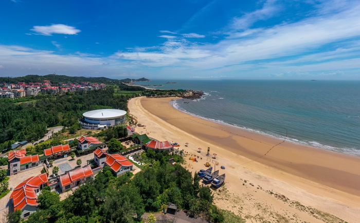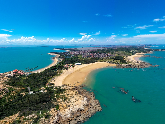 湄洲島海岸線:水清、岸綠、藍天、碧海、金沙灘