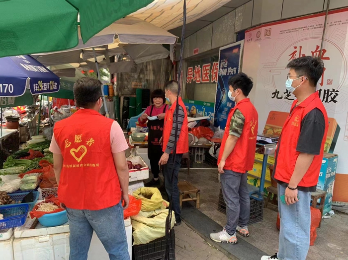 2022年3月,五里街鎮農貿市場:開展疫情防控工作,勸導群眾佩戴口罩。華巖社區 供圖