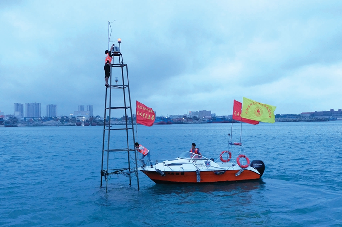 祥芝漁港義務救援協會檢修暗礁警示燈。施志誠 攝