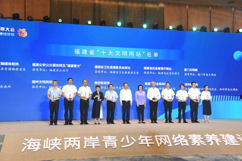 福建省“十大文明網站”分別為,共青團福建省委推薦的“青春福建”融媒體矩陣、東南網推薦的文明風、福建省公安廳推薦的福建公安公眾服務網及“福建警方”、福州市委文明辦推薦的福州文明網矩陣、福建省衛生健康委員會推薦的福建省衛生健康委員會網站、龍巖市委網信辦推薦的閩西新聞網、福建省應急管理廳推薦的福建省應急管理廳網站、福建省林業局推薦的福建省林業局網站、廈門市委文明辦推薦的廈門文明網、漳州市委網信辦和漳州市委文明辦推薦的漳州新聞網。