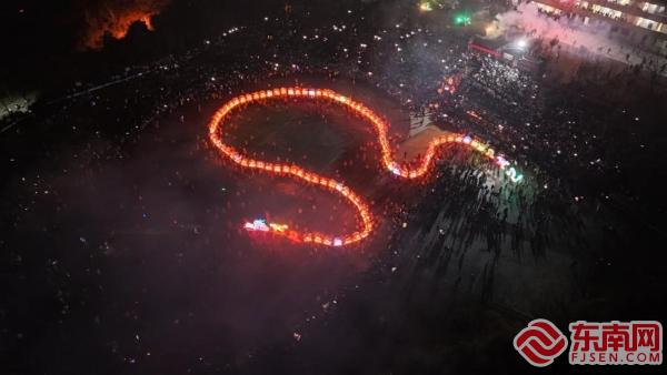 東南網龍巖2月15日訊(本網記者 邱之劼)三百米板凳龍舞動新春,非遺魅力點燃新橋夜空。2月14日,農歷大年初五,福建省漳平市新橋鎮西埔村的千名村民共同舞起長約三百米的板凳花燈龍,穿村祈福。