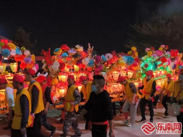 漳平市新橋鎮西埔村村民舞起長約300米的板凳花燈龍 邱聲農 攝