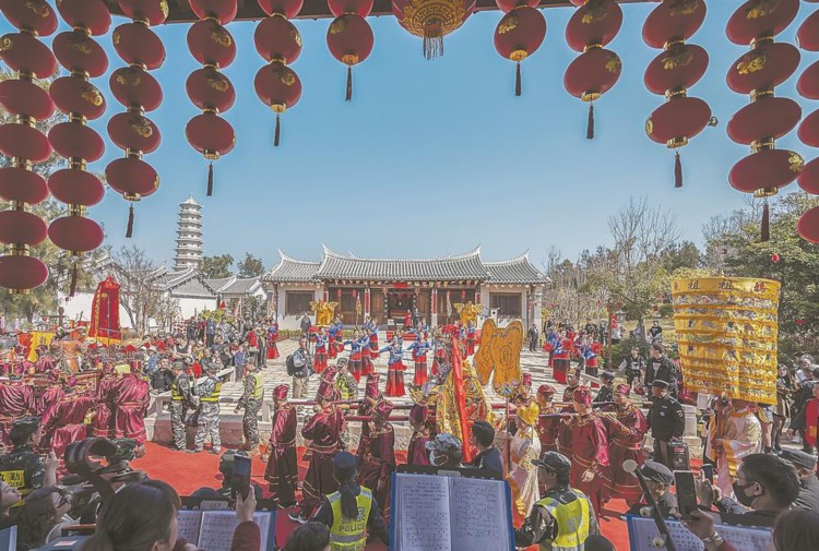 媽祖金身巡安隊伍抵達天妃故里遺址公園。本報通訊員 高亞成 攝