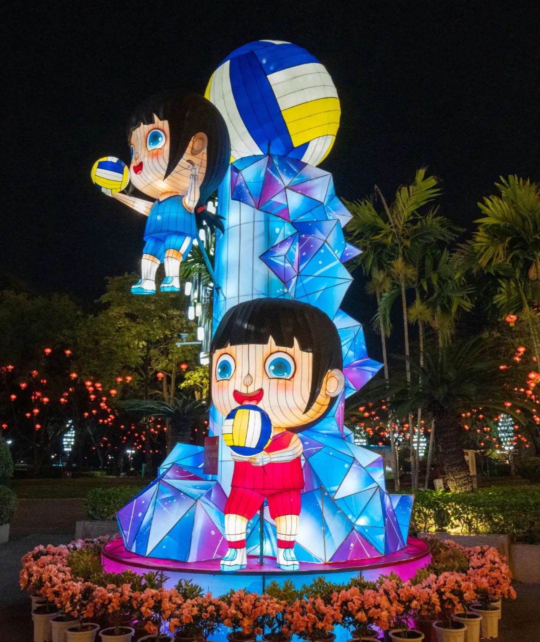 西湖生態(tài)園內(nèi),長(zhǎng)120米,高6米的“雙龍戲珠”,騰云駕霧,造型栩栩如生,圍繞濱海明珠騰躍而起,昭示著新一年的蓬勃生機(jī)。中山公園內(nèi)的“福瑞園”,廊道燈一個(gè)緊挨一個(gè),盞盞花燈交織出幸福之路,炫彩奪目,熠熠生輝。勝利公園的花燈以漳州女排精神為主題,將中國(guó)女排團(tuán)結(jié)拼搏同漳州人民愛(ài)拼會(huì)贏,勤勞富美相契合。九龍公園門前果籃造型燈組,融入漳州六大名果,向市民游客展示漳州豐富物產(chǎn),也預(yù)示著新的一年,歲豐年稔,碩果累累。