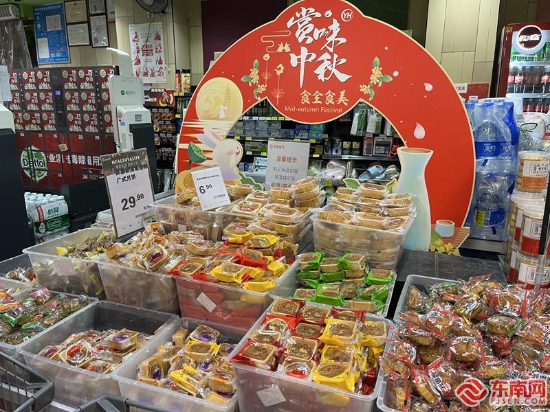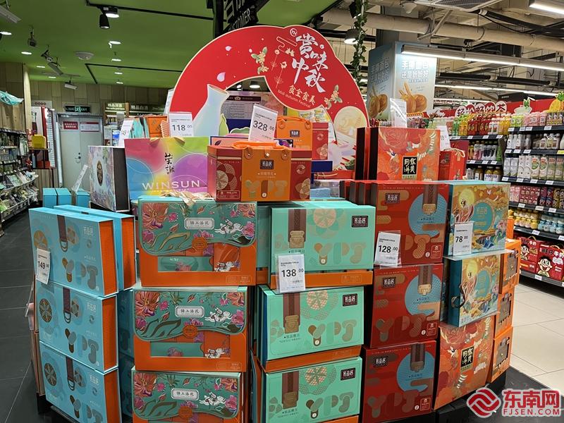 9月11日,記者走進福州市鼓樓區一家永輝超市,中秋節氛圍撲面而來。進門最顯眼處擺放著“賞味中秋 食全食美”月餅展臺,十余款月餅整齊擺放在貨架上,多為華美、聚春園、依品居等品牌。