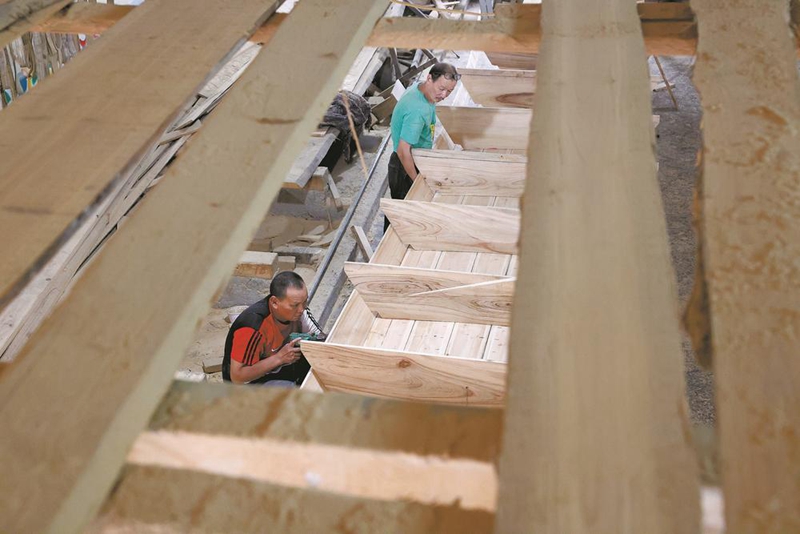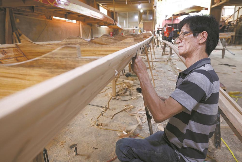 端午臨近,閩侯縣南通鎮(zhèn)方莊村迎來(lái)造船旺季,多家龍舟廠的古木船工匠加班加點(diǎn)趕制傳統(tǒng)龍舟,滿足市場(chǎng)需求。