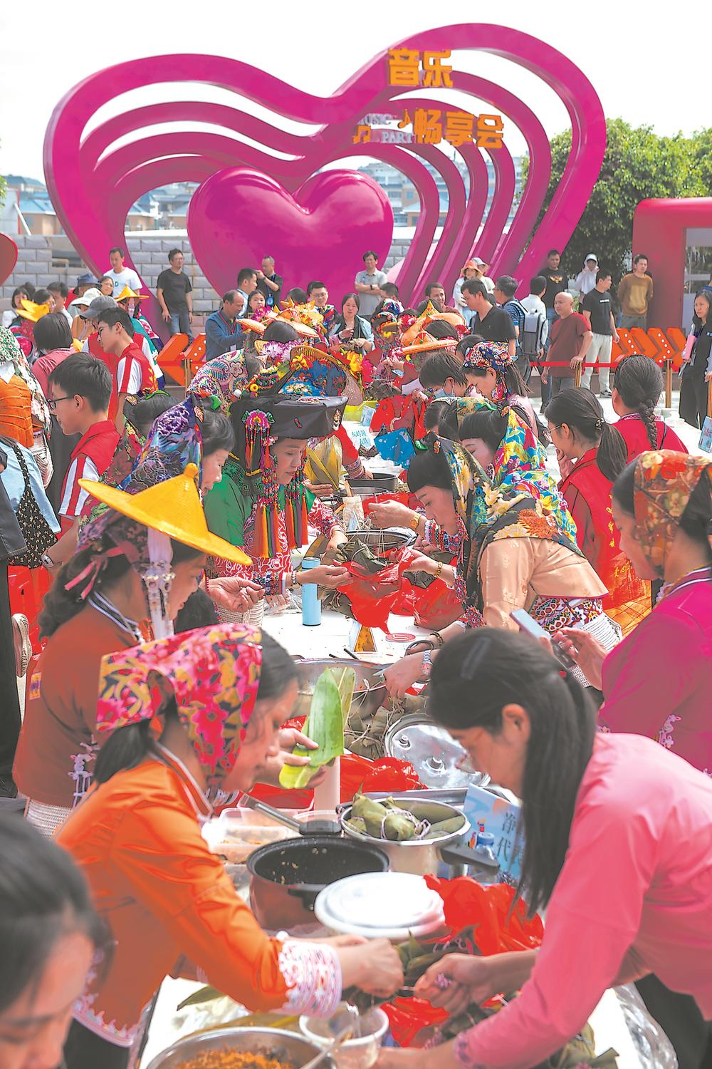 5月31日,來自泉州惠安縣12個鄉(xiāng)鎮(zhèn)的百名惠女身著傳統(tǒng)服飾參與粽藝比賽。在限定時間內(nèi),百雙巧手翻飛起舞,粽葉裹米、彩繩系福。莊釗瀅 鄧文祥 攝影報道