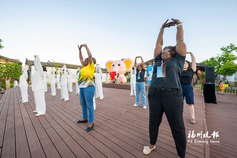 隨后,專業(yè)老師帶領(lǐng)大家練八段錦、戶外瑜伽,一招一式、一呼一吸間,浮躁與疲憊悄然消散。不少在街區(qū)游玩的外國(guó)友人被吸引,加入練習(xí)八段錦的隊(duì)伍,體驗(yàn)后直呼“暢快”。