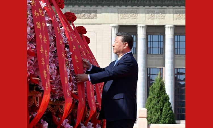 習(xí)近平等黨和國家領(lǐng)導(dǎo)人出席烈士紀(jì)念日向人民英雄敬獻(xiàn)花籃儀式