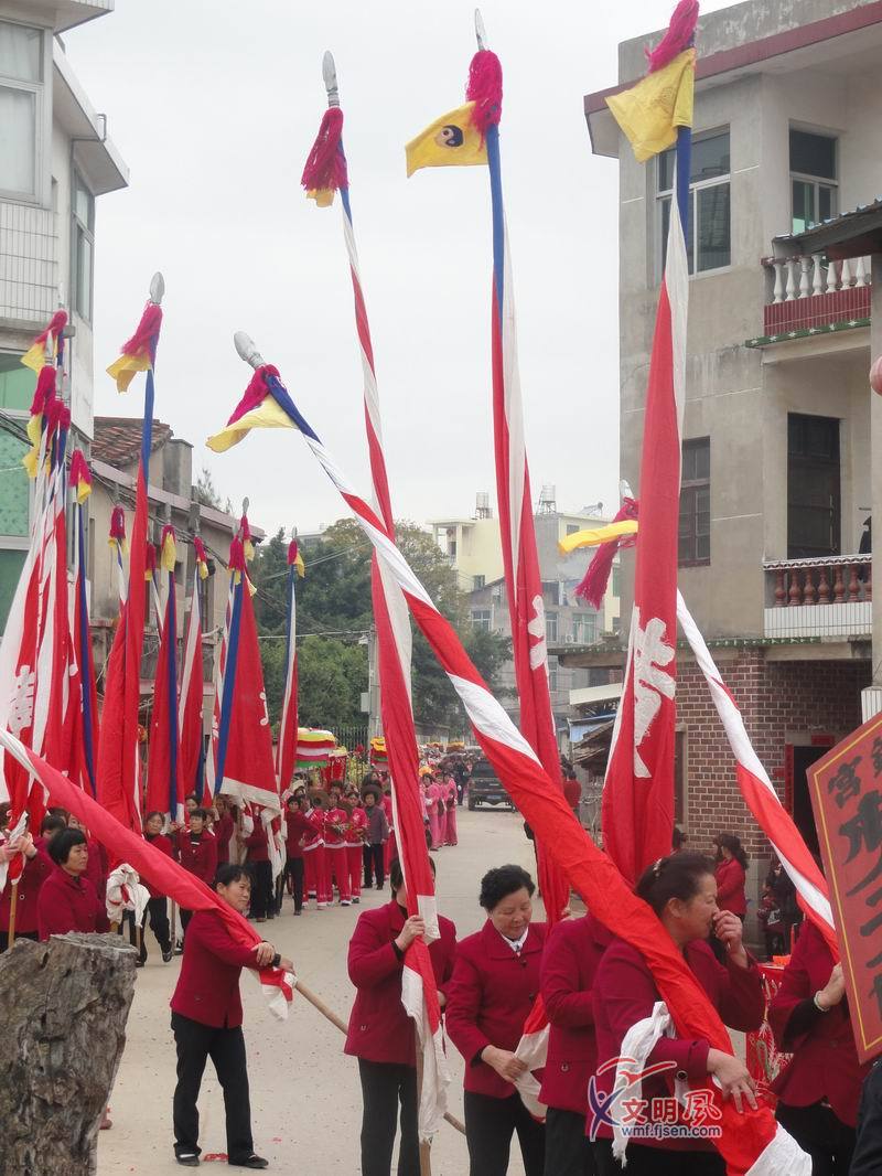手持碩大姓旗的女子旗隊(duì),寄托著村民驅(qū)邪消災(zāi)保平安的良好祝愿。