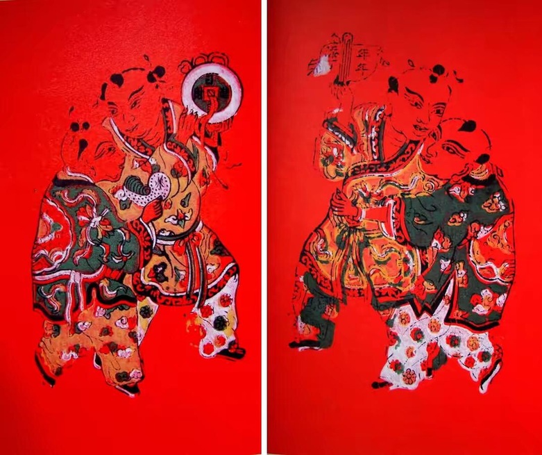 上圖為漳州木版年畫(huà),畫(huà)面上是兩童子嬉戲,手捧銅錢(qián)和元寶,壽桃形花燈寫(xiě)著“年年添丁”,這就具有閩南風(fēng)俗特色的漳州木版年畫(huà)、傳統(tǒng)年味十足的《日日進(jìn)財(cái)》《年年添丁》。據(jù)悉,印制這兩幅作品的雕版屬于清代,相當(dāng)珍貴。